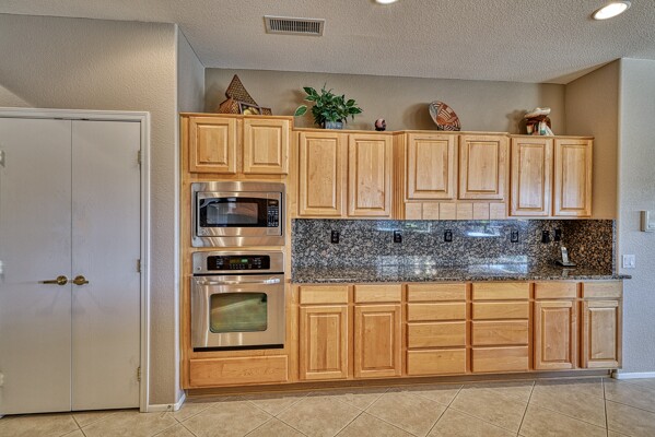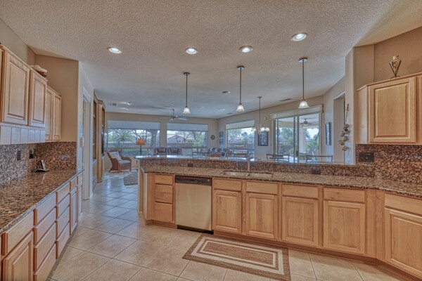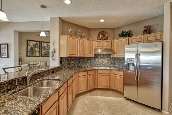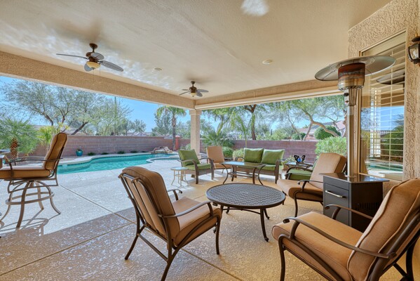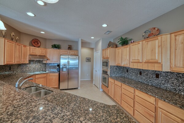 Relax and unwind in your very own oasis with a heated pool and spa, transformed to perfection with PebbleTec. The heart of the home, the kitchen, shines with granite countertops and upgraded appliances, making it a chef's delight.