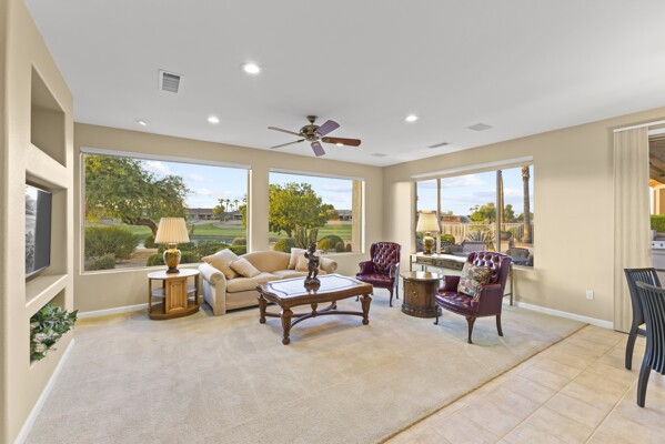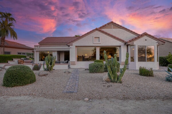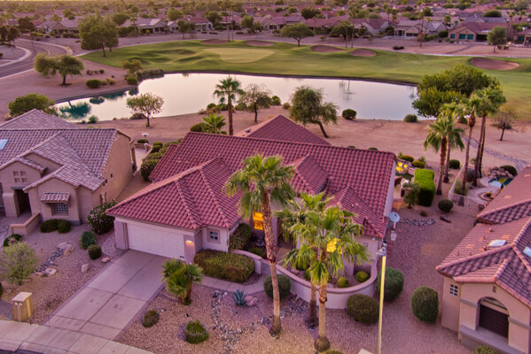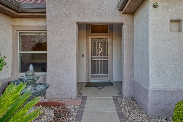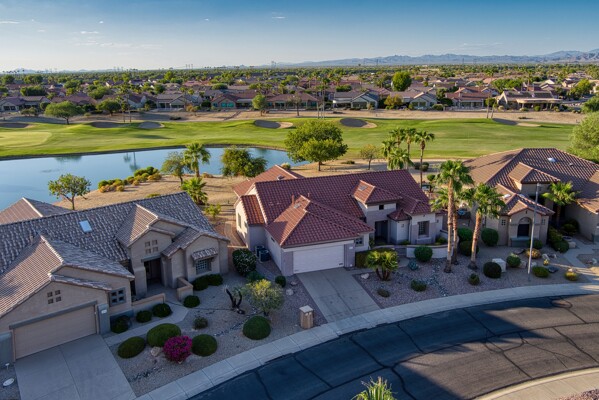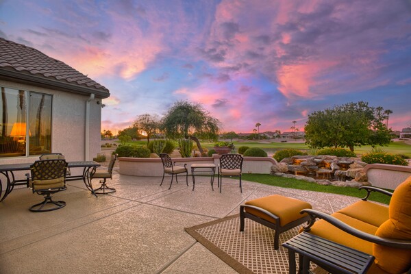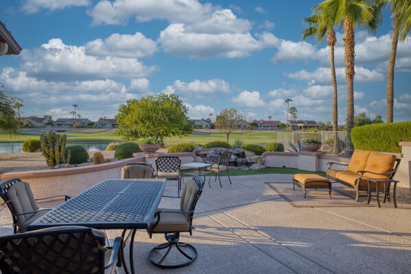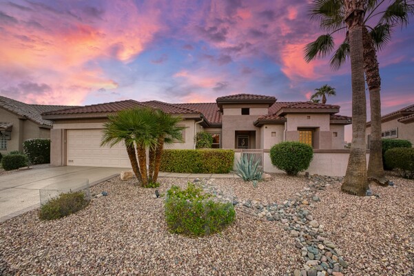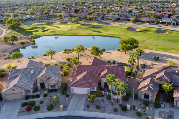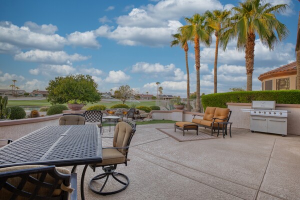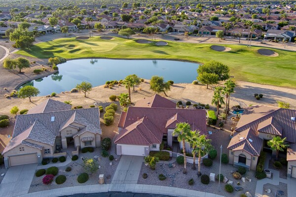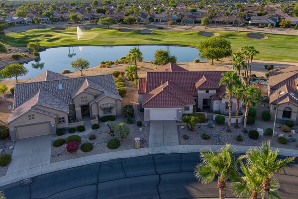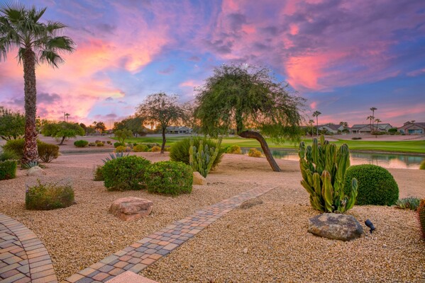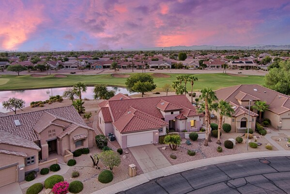 One of the Best Addresses in Sun City Grand if not The Best! Nestled on a Street that was slated to be Model Park 3. This tranquil street is lined wt Premier and Estate Homes only. Half a block away from the vibrant Village Center, golf course, restaurants, fitness center, Palm Center, pools, spa, dog park, tennis, lawn bowling, bocce ball and a plethora of fun events and activities. This Stunning Expanded, Updated Stonecrest overlooks a lake with breathtaking golf course and mountain views and more! Sought after split plan wt spacious additions to all 3 bedrooms and laundry room. Other features are Vaulted Ceiling, Office, Luxury Kitchen wt lots of counterspace, Two and a half car garage, inviting patio wt a wonderful water feature, gas grill, electronic patio cover, professionally landscaped, nice LG washer and dryer, sink and cabinets at laundry plus folding area. Primary has a sitting room overlooking the lake and golf course and door leading to the patio. Primary suite has a garden tub and separate shower, roomy walk-in closet. HVAC units not original. Newer Roof. New Interior Paint. Large Picture windows showcase fabulous views. Newer baseboards. Gutters. Guest Bath Upgraded. PVC piping. Many accent lights added. Solar Tubes and Attic Fan. Vacation Mailbox. Reverse Osmosis. Soft Water. Fall in love with this unique opportunity and make a grand lifestyle. Enjoy the 4 golf courses owned by the residents, 22 pickleball courts, walking and biking trails, fishing and many free get togethers with friends!