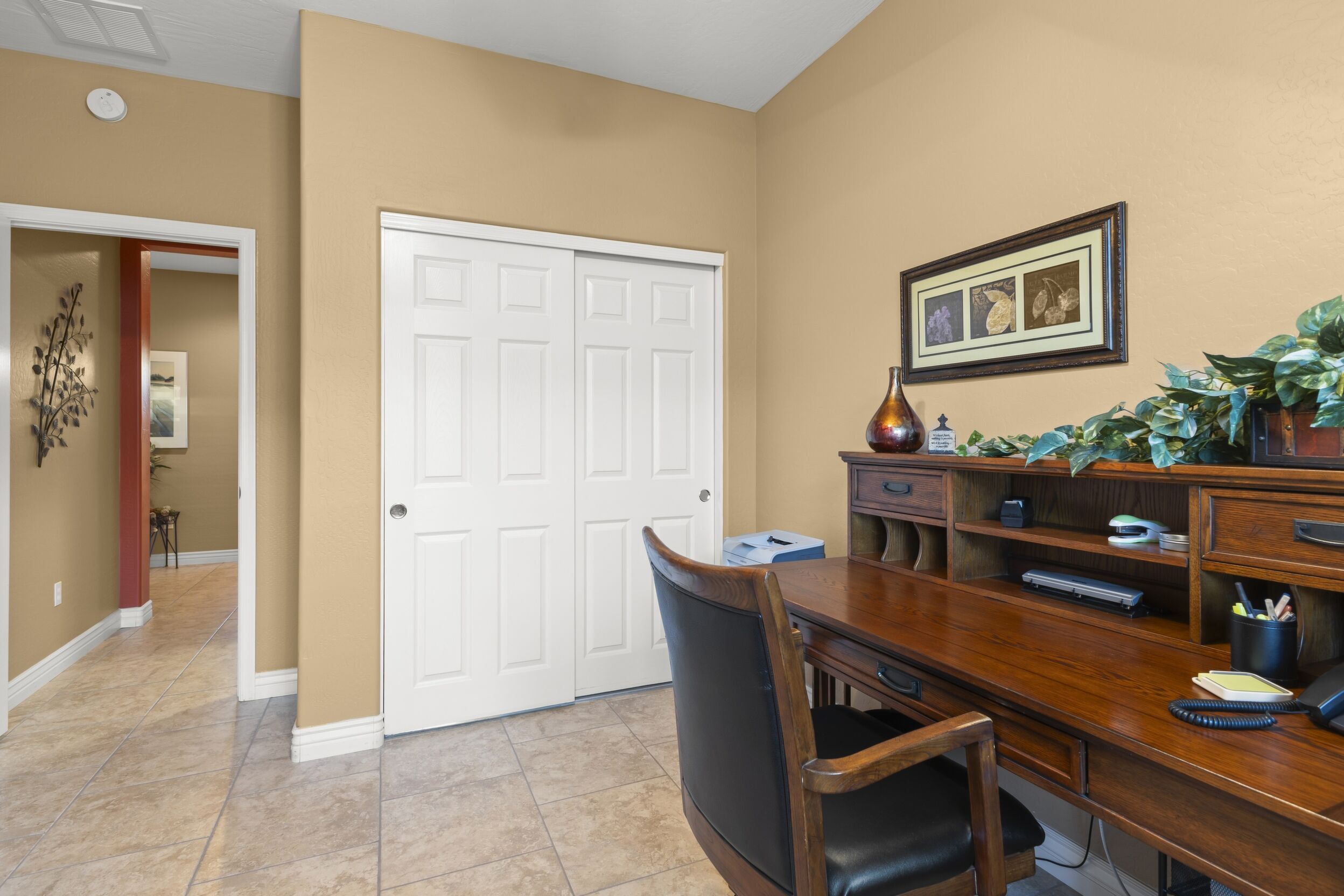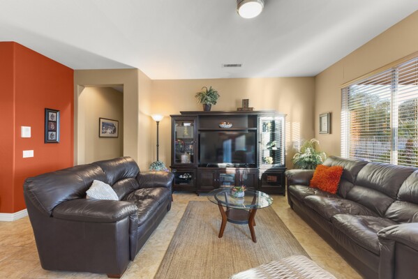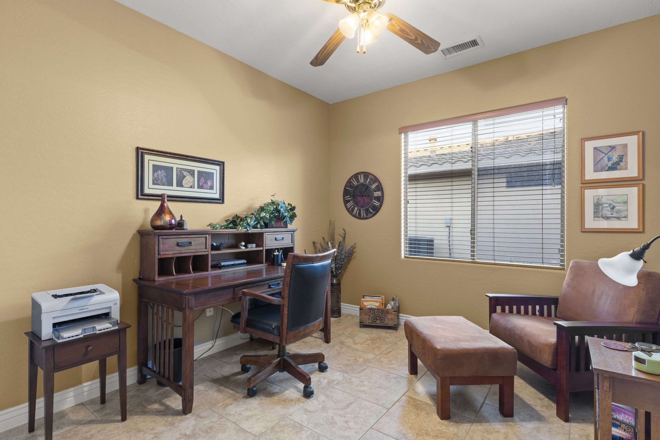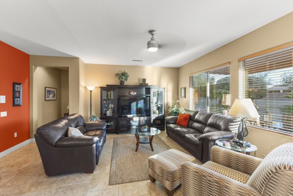 The updated bathrooms also feature quartz countertops, while the primary suite and one guest room each include bay windows that allow for ample natural light. The fenced backyard overlooks a serene desert preserve and walking trail—perfect for enjoying Arizona sunsets.