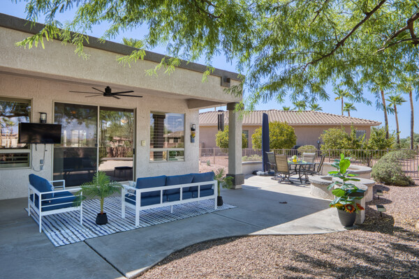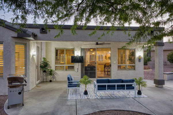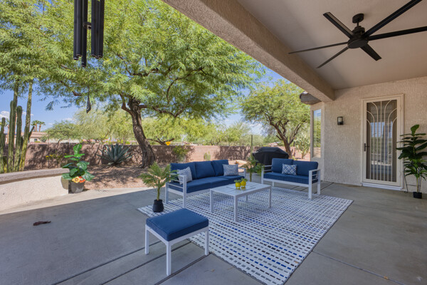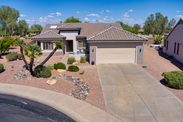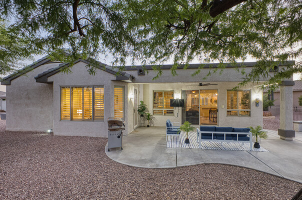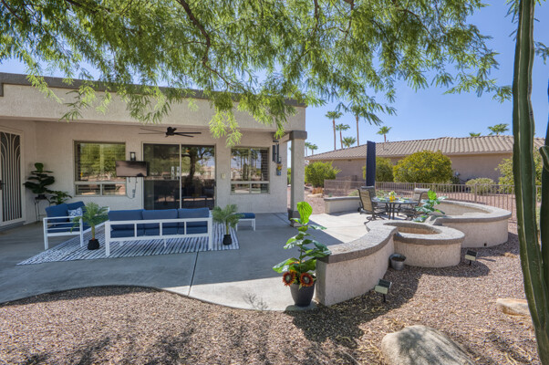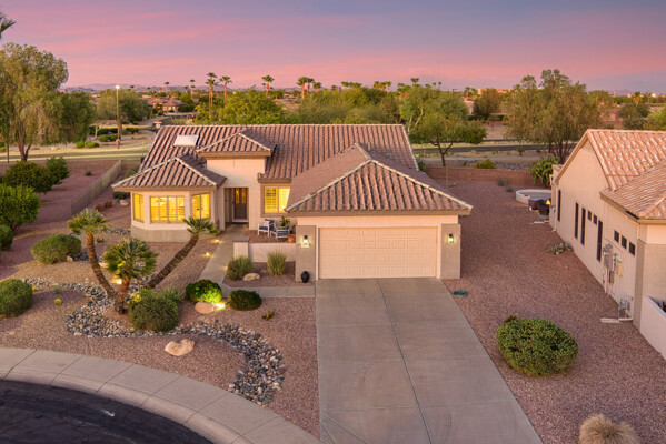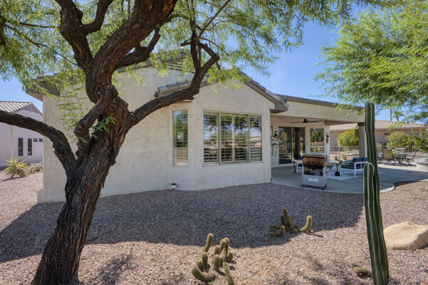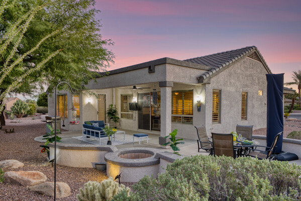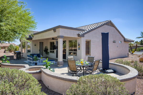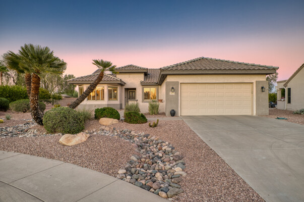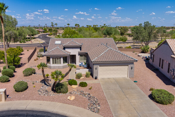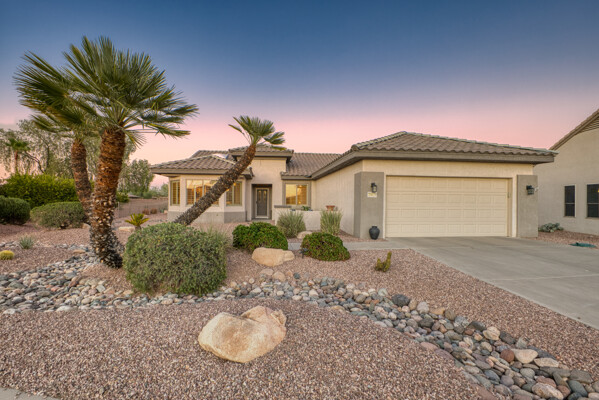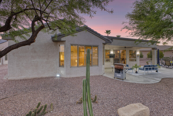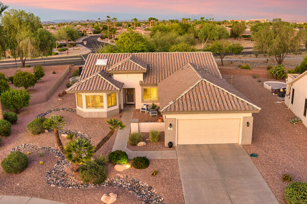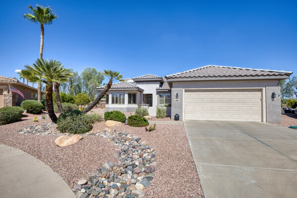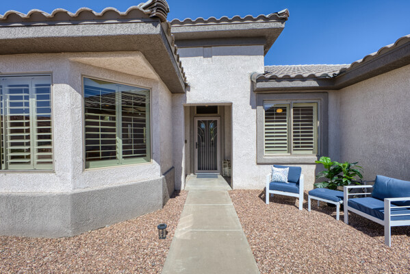 Immaculate Sierra model in The Grand featuring 2, 014 sq ft, beautifully updated throughout. The Gourmet kitchen includes Bosch stainless steel refrigerator, Bosch dishwasher, Bosch gas range, built-in microwave and rich cabinetry with ample storage. The primary suite offers a bay window, soaking tub, dual vanities, and walk-in closet. Recent upgrades: New 2-stage Trane HVAC system with Smart Ecobee Thermostat (2024), Whirlpool washer/dryer, water heater and new roof (2022). Extended garage with built-ins, plantation shutters and a private backyard with extended patio. The Grand - Sierra Model Elegance. Experience a refined sense of comfort and sophistication in this beautifully updated Sierra Model, offering 2, 014 square feet of thoughtfully designed living space nestled in the heart of Surprise's coveted 45+ community, The Grand. With serene desert surroundings, luxurious upgrades, and a seamless layout, this home blends everyday convenience with elevated style. The curb appeal shines from the moment you arrive. A new roof (2022) and low-maintenance desert landscaping set a tranquil tone. Whether enjoying your morning coffee on the front patio or entertaining guests out back, every inch of this property radiates pride of ownership. Luxury Flooring & Timeless Touches Step inside to find wide-plank flooring flowing effortlessly throughout the entire home, no carpet in sight. Fresh neutral paint, and plantation shutters enhance every space with light, warmth, and elegance. A Kitchen That Performs & Impresses At the heart of the home lies a chef-worthy kitchen, outfitted with top-tier, stainless steel appliances and custom details: Bosch French Door Stainless Steel Refrigerator with ice maker Bosch Dishwasher, whisper-quiet with AutoAir and crystal-dry capabilities. Bosch 5-Burner Range with precision simmer burner and continuous grates Rich cabinetry provides ample storage and quartz countertops make cooking and clean-up a breeze. A center island adds prep space, and the sunny breakfast nook is the perfect spot to begin your day. Living Spaces Designed to Inspire The living room has a stunning custom entertainment wall featuring a built-in Valuxhome electric fireplace with LED flames, providing ambiance and a focal point for cozy evenings or lively gatherings. The adjacent dining area offers generous space for hosting dinner parties or intimate meals, creating effortless flow between formal and casual entertaining. Owner's Suite Retreat Tucked at the back of the home, the spacious primary suite offers a true retreat. The bay window welcomes in natural light while maintaining privacy. The spa-like en-suite bath includes a deep soaking tub, a separate walk-in shower, dual vanities, and updated chrome fixtures. A large walk-in closet completes the suite. Comfortable Guest Spaces The guest bedroom is bright and inviting with easy access to the hall bath, which has been beautifully refreshed with updated lighting and finishes. The den complete with double doors readily serves as a third bedroom, office, craft room, or media lounge, depending on your needs. Convenient & Functional Features The interior laundry room includes a Whirlpool high-efficiency washer and dryer (2023) and upper cabinetry for added storage. The extended two-car garage is equally impressive, featuring built-in storage cabinets and a new water heater (2023). Backyard Bliss Out back, a full-length covered patio creates shaded space for outdoor dining or quiet evenings. The landscaping is clean and low-maintenance, offering a private, peaceful setting with no neighbors directly behind you. Recent Notable Upgrades: New 2-stage Trane HVAC system with Smart Ecobee Thermostat (2024) New Roof (2022) Bosch Refrigerator, Bosch Dishwasher, Whirlpool Laundry Set (2023) Custom electric fireplace & entertainment wall New water heater (2023) Plantation shutters Extended garage with cabinets A full hot water circulator provides prompt hot water throughout the house.