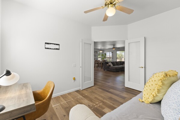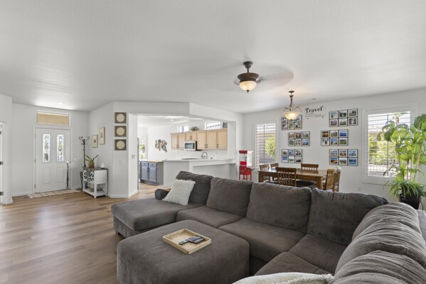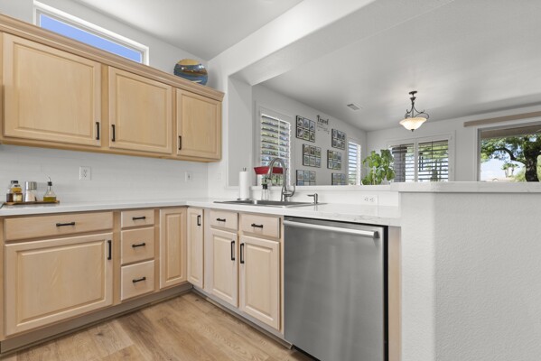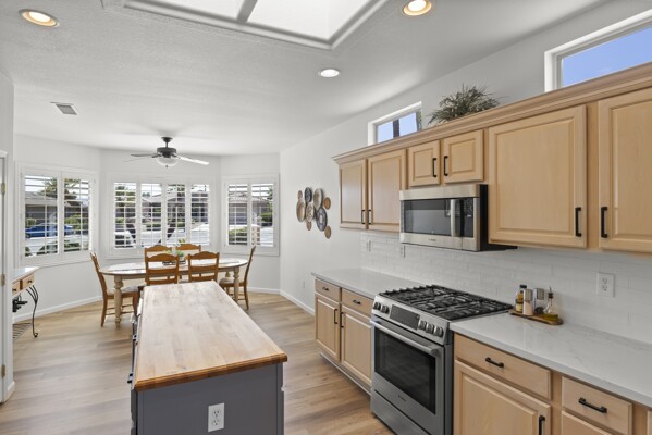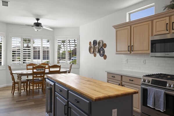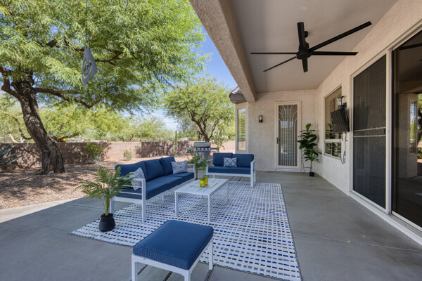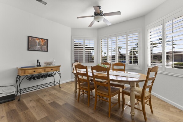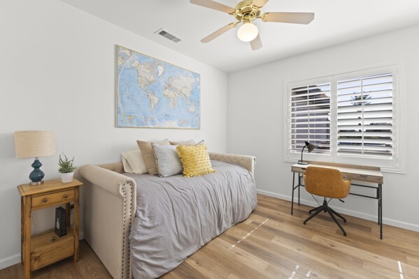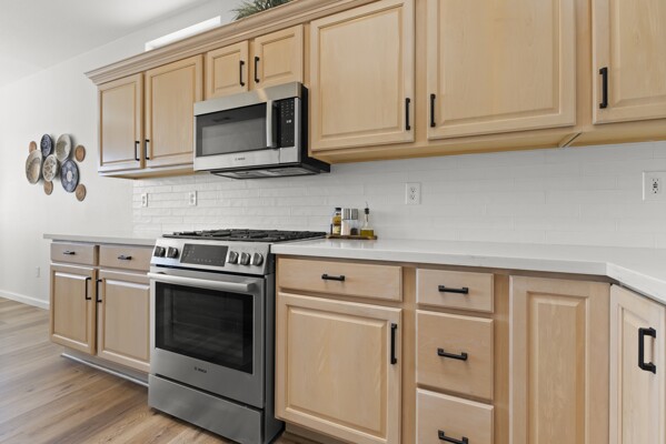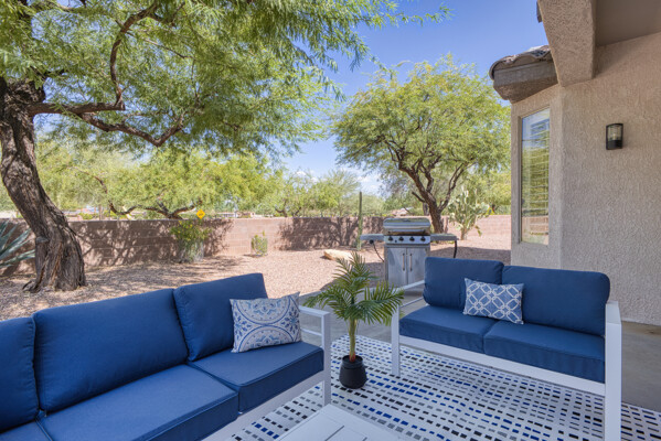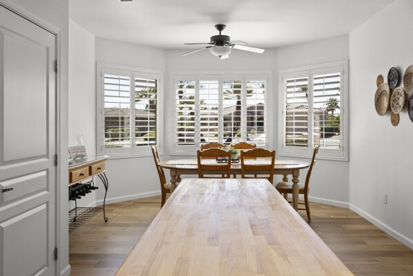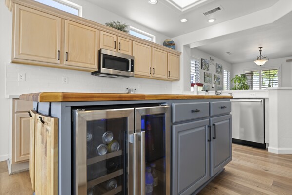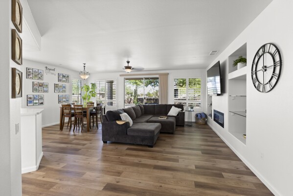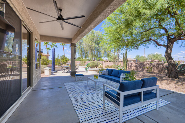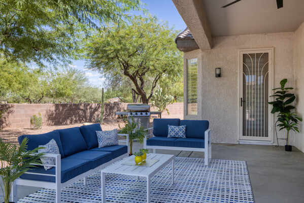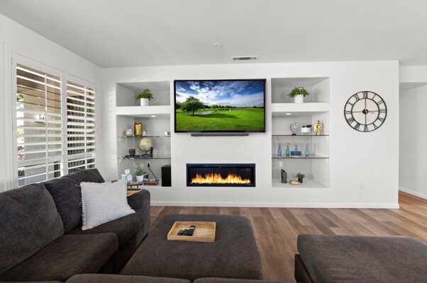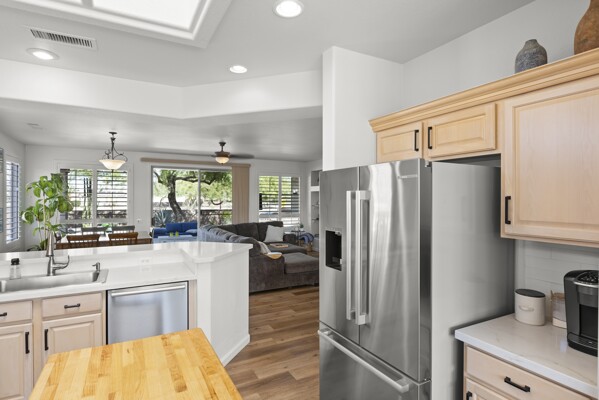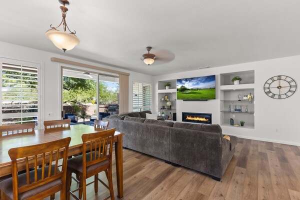 Immaculate Sierra model in The Grand featuring 2, 014 sq ft, beautifully updated throughout. The Gourmet kitchen includes Bosch stainless steel refrigerator, Bosch dishwasher, Bosch gas range, built-in microwave and rich cabinetry with ample storage. The primary suite offers a bay window, soaking tub, dual vanities, and walk-in closet. Recent upgrades: New 2-stage Trane HVAC system with Smart Ecobee Thermostat (2024), Whirlpool washer/dryer, water heater and new roof (2022). Extended garage with built-ins, plantation shutters and a private backyard with extended patio. The Grand - Sierra Model Elegance. Experience a refined sense of comfort and sophistication in this beautifully updated Sierra Model, offering 2, 014 square feet of thoughtfully designed living space nestled in the heart of Surprise's coveted 45+ community, The Grand. With serene desert surroundings, luxurious upgrades, and a seamless layout, this home blends everyday convenience with elevated style. The curb appeal shines from the moment you arrive. A new roof (2022) and low-maintenance desert landscaping set a tranquil tone. Whether enjoying your morning coffee on the front patio or entertaining guests out back, every inch of this property radiates pride of ownership. Luxury Flooring & Timeless Touches Step inside to find wide-plank flooring flowing effortlessly throughout the entire home, no carpet in sight. Fresh neutral paint, and plantation shutters enhance every space with light, warmth, and elegance. A Kitchen That Performs & Impresses At the heart of the home lies a chef-worthy kitchen, outfitted with top-tier, stainless steel appliances and custom details: Bosch French Door Stainless Steel Refrigerator with ice maker Bosch Dishwasher, whisper-quiet with AutoAir and crystal-dry capabilities. Bosch 5-Burner Range with precision simmer burner and continuous grates Rich cabinetry provides ample storage and quartz countertops make cooking and clean-up a breeze. A center island adds prep space, and the sunny breakfast nook is the perfect spot to begin your day. Living Spaces Designed to Inspire The living room has a stunning custom entertainment wall featuring a built-in Valuxhome electric fireplace with LED flames, providing ambiance and a focal point for cozy evenings or lively gatherings. The adjacent dining area offers generous space for hosting dinner parties or intimate meals, creating effortless flow between formal and casual entertaining. Owner's Suite Retreat Tucked at the back of the home, the spacious primary suite offers a true retreat. The bay window welcomes in natural light while maintaining privacy. The spa-like en-suite bath includes a deep soaking tub, a separate walk-in shower, dual vanities, and updated chrome fixtures. A large walk-in closet completes the suite. Comfortable Guest Spaces The guest bedroom is bright and inviting with easy access to the hall bath, which has been beautifully refreshed with updated lighting and finishes. The den complete with double doors readily serves as a third bedroom, office, craft room, or media lounge, depending on your needs. Convenient & Functional Features The interior laundry room includes a Whirlpool high-efficiency washer and dryer (2023) and upper cabinetry for added storage. The extended two-car garage is equally impressive, featuring built-in storage cabinets and a new water heater (2023). Backyard Bliss Out back, a full-length covered patio creates shaded space for outdoor dining or quiet evenings. The landscaping is clean and low-maintenance, offering a private, peaceful setting with no neighbors directly behind you. Recent Notable Upgrades: New 2-stage Trane HVAC system with Smart Ecobee Thermostat (2024) New Roof (2022) Bosch Refrigerator, Bosch Dishwasher, Whirlpool Laundry Set (2023) Custom electric fireplace & entertainment wall New water heater (2023) Plantation shutters Extended garage with cabinets A full hot water circulator provides prompt hot water throughout the house.