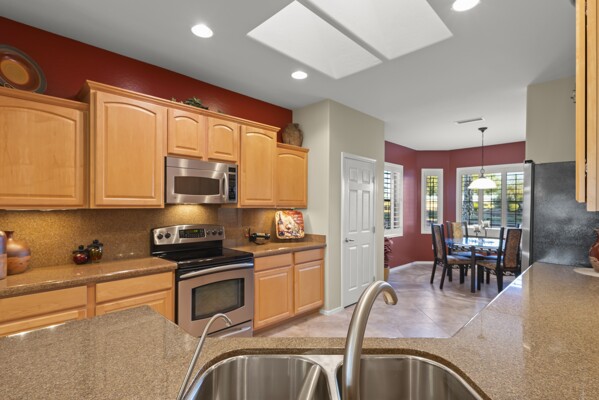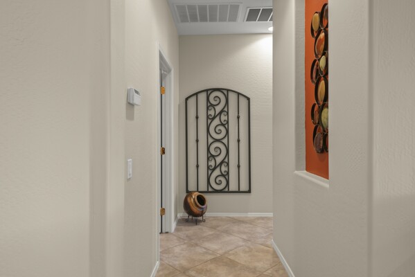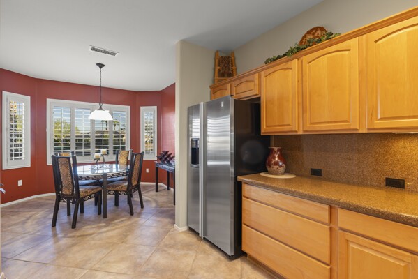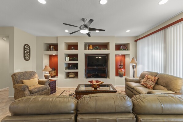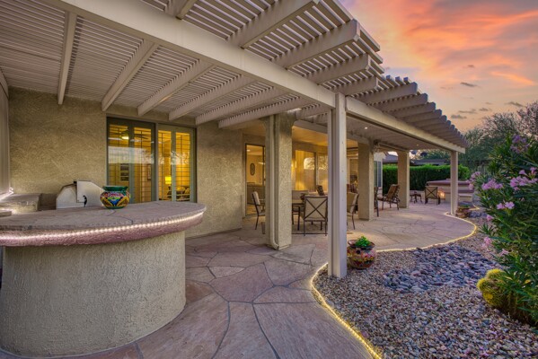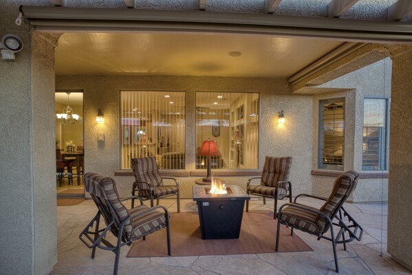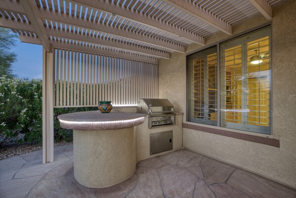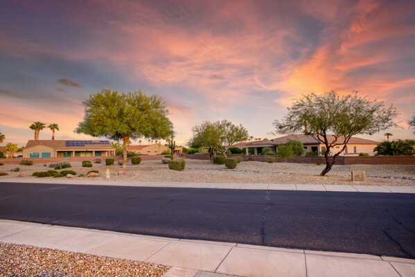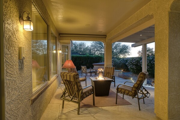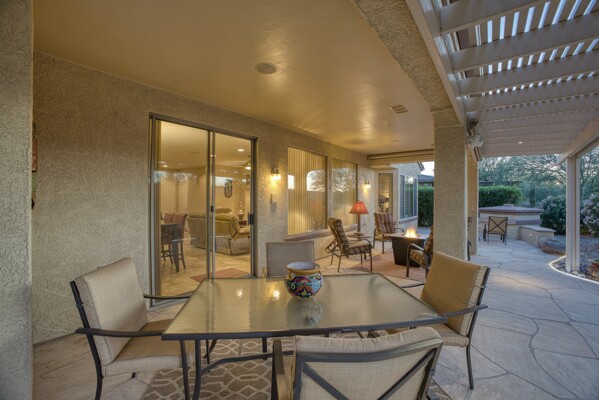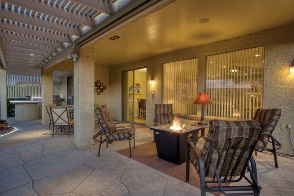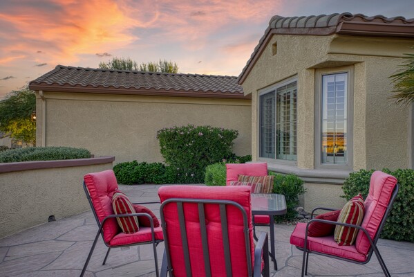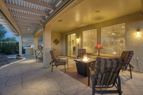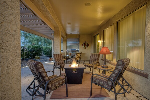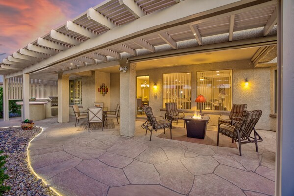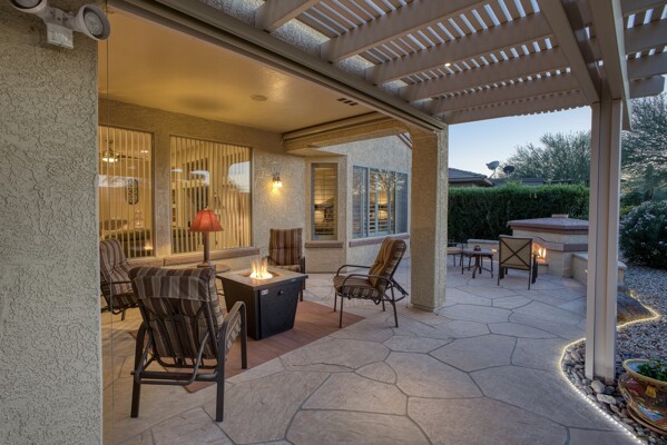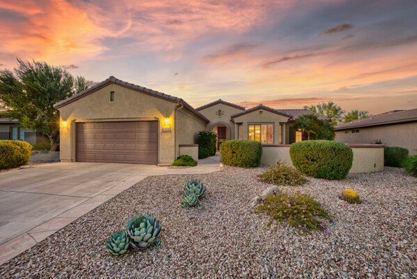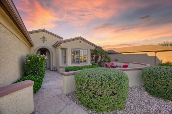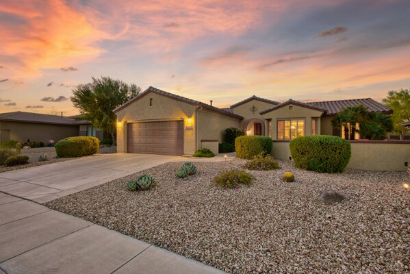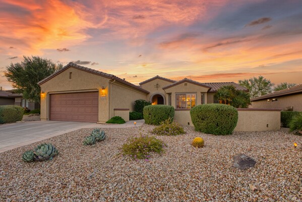 If you want peace and quiet this is the home for you! Desired and Top Selling Borgata Model with NO neighbors in Front or Back! Sunny breakfast bay nook overlooks park like setting across the street adding to the overall appeal of this home. Large attractive front courtyard. 1950 sq ft, 3 bedrooms, 2 baths, split plan. Great room style home! EXTENDED garage! Large kitchen, maple cabinets, granite counter tops, stainless appliances, skylight, bay window, pantry. Owner's Suite has bay window. Large bath wt dual sinks, walk in closet. Laundry rm with cabinets. W/D Included. Enjoy gorgeous sunsets on the extended private patio with cozy fireplace, pergola, built in grill. Media wall in great room, shutters on most windows, built ins at guest, coach lights, ceiling fans, 2x6 construction. Raised Panel Doors, Security Door, Coated Front Sidewalk, Courtyard, Extended Patio and Garage. Homes like this Seldom Come Available! COME JOIN THE FUN AT SUN CITY GRAND, AMERICA'S PREMIER ACTIVE ADULT COMMUNITY. FOUR GOLF COURSES, 22 PICKLEBALL COURTS, 11 TENNIS COURTS, TWO FITNESS CAMPUSES, BOCCE, LAWN BOWLING.