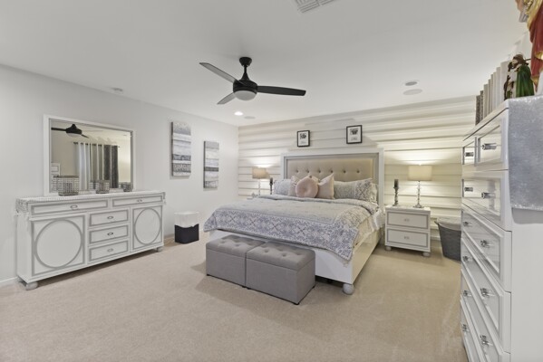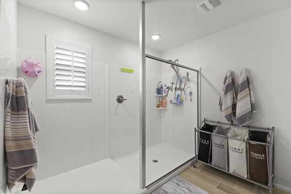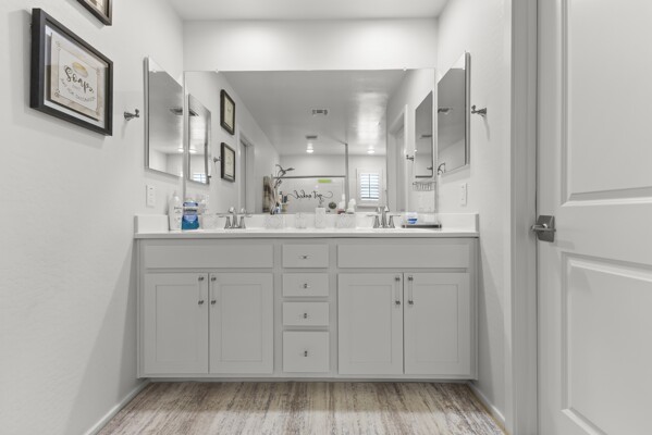 The primary suite is a retreat with a spa-like bath, oversized walk-in shower, dual vanities, and an expansive closet.